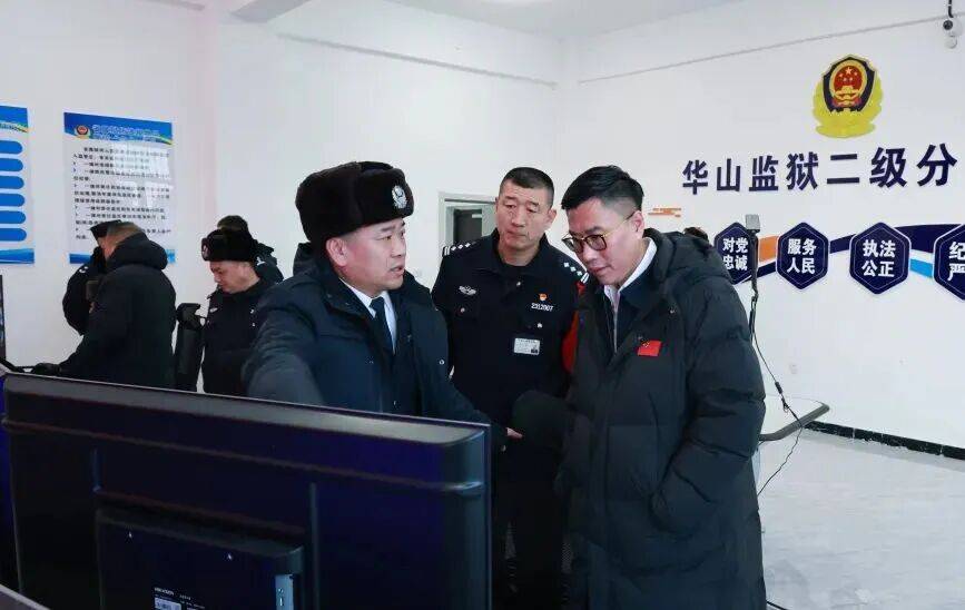正在凤凰山牢狱,蒙帅实地查抄裁剪车间、、食堂等沉点区域,核查设备运转取平安轨制落实环境,必定牢狱工做成效。